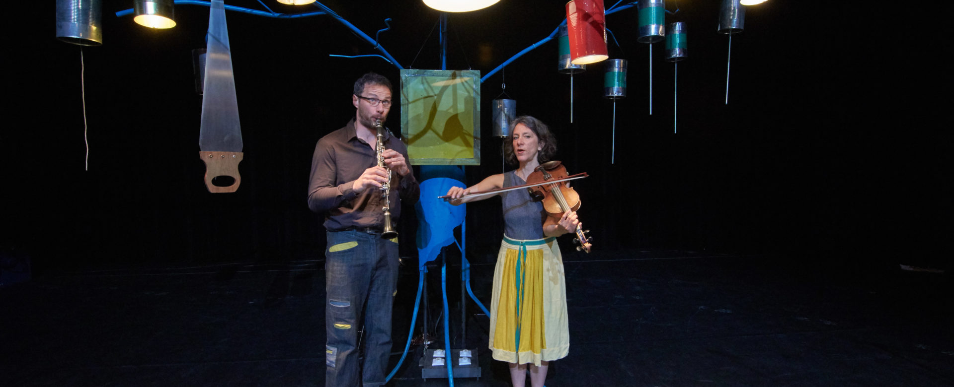 Guidés par une phrase, une image inattendue ou un sens équivoque, les deux musiciens transposent en musique à travers jeux vocaux et instrumentaux les surprenantes sensations de ces textes venus d’ailleurs. Les poèmes qu’ils nous content s’entrelacent avec des compositions et des improvisations, des univers sonores se fabriquent sur scène et nous transportent dans de fabuleux voyages imaginaires.